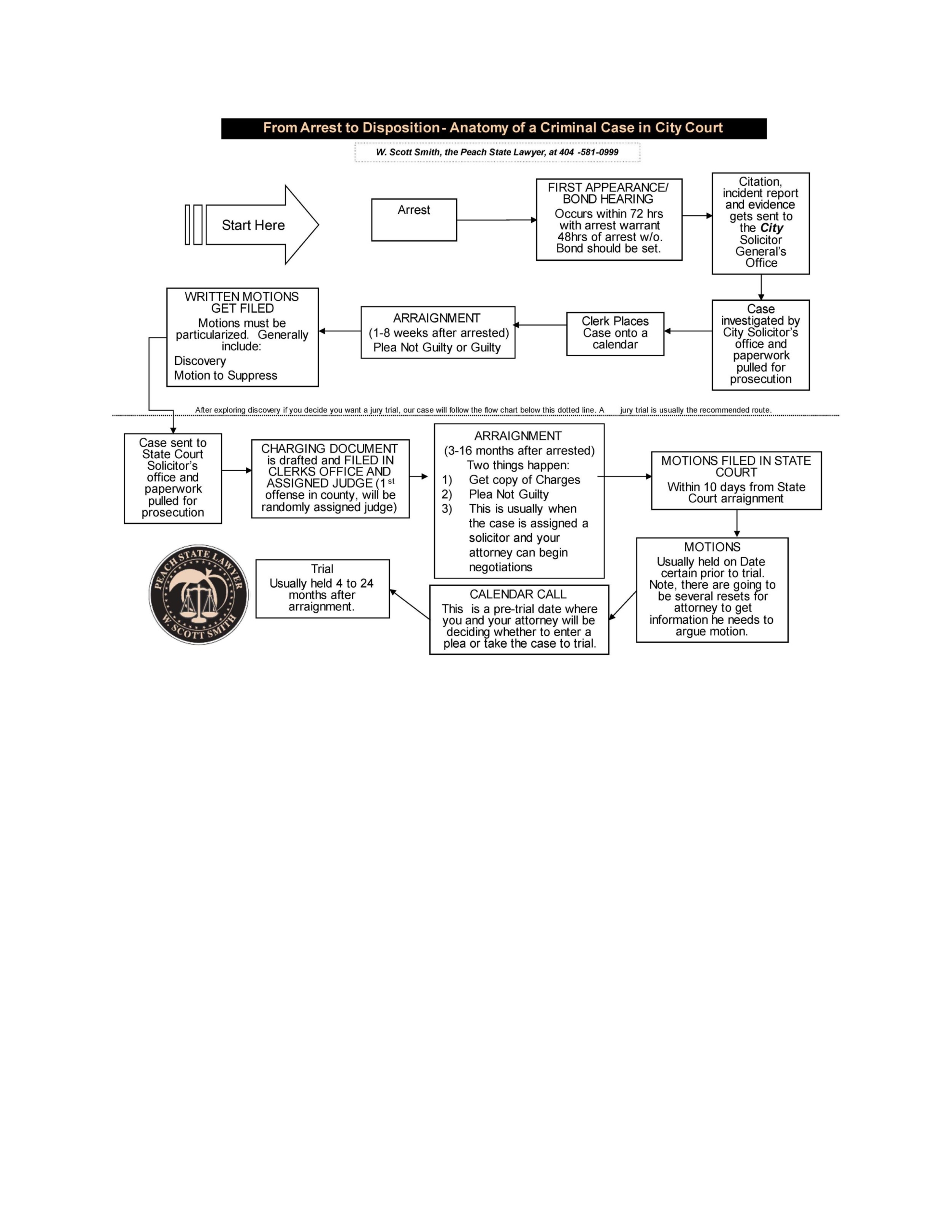 Your case first begins in Municipal court. This occurs in the city in which you were arrested. For example, if you were arrested for DUI by an Atlanta Police Officer within the city of Atlanta, your case will begin in the Municipal Court of Atlanta. There are several opportunities for your attorney to discuss and negotiate the case with the city solicitor. There are several court dates that may happen while your case is in municipal court. Municipal court is more casual than state court, where each court date is an arraignment. In other words, there are typically no specially set plea dates and other hearings in municipal court. Your attorney will negotiate with the city solicitor to try and dismiss the charge, reduce the charge, reduce the fines, or any other potential negotiating points your attorney deems critical.